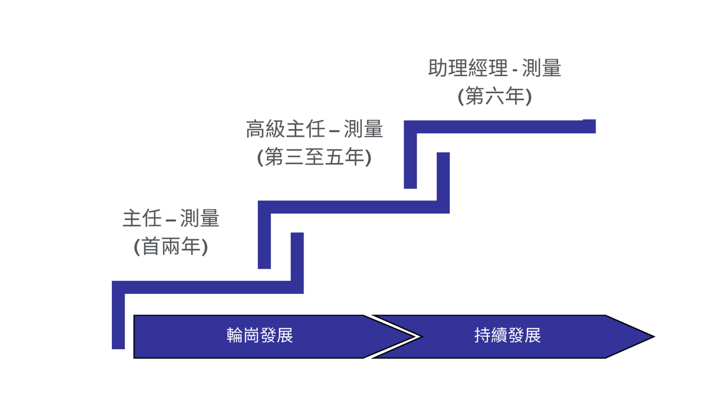 完成首兩年的輪崗機會後,你將會成為高級主任 – 測量,進一步發展你的專業技能。其後發展視乎工作表現及職位空缺。